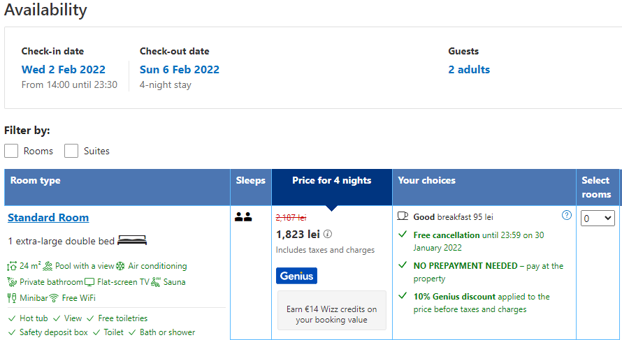 Total cazare 1.823 Ron / 4 nopti / 2 persoane.