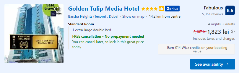 Costuri cazare hotel 4 stele Dubai: 1.823 Ron