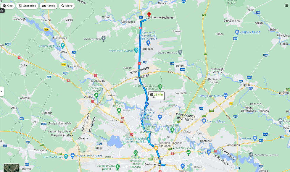 Situat in Balotesti, la 23 km de centrul Bucurestiului sau 26 de minute cu masina, Therme reprezinta cel mai mare centru de agrement cu piscine interioare si exterioare din Romania.